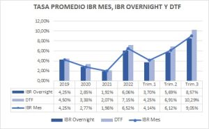 Gráfica 2. Tasa promedio IBR mes, IBR overnight y DTF