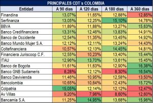 3.1. COMPORTAMIENTO DE LAS TASAS CDT’S DE LAS ENTIDADES MÁS IMPORTANTES DEL PAÍS