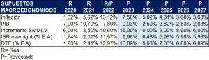 Tabla 1 Datos tomados de: Proyecciones macroeconómicas informes Bancolombia, BTG Pactual, otros. Elaboración Propia