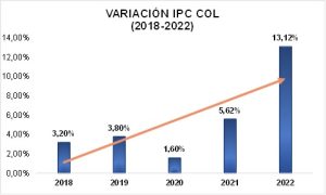 La variación del IPC (Índices de Precios al Consumidor) del 2022 cerró en 13,12%, la cifra más alta que se haya observado en lo últimos años. Se estimaba que la inflación no sobrepasara el 13,0% . Los componentes que tuvieron las variaciones más altas fueron los Alimentos y bebidas no alcohólicas con un 27,81% y Restaurantes y hoteles con un 18,54%, seguido de Alojamiento con 12,97% , Servicios con 13,09% y Combustibles con 6,94%.
