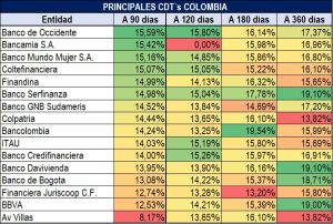 COMPORTAMIENTO DE LAS TASAS CDT’S DE LAS ENTIDADES MÁS IMPORTANTES DEL PAÍS