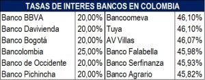 A principios del mes de marzo, el sistema bancario colombiano empezó a observar la disminución de las tasas de intereses de algunos bancos a sus clientes siendo pionero Bancolombia con una reducción del 46,10% al 25,00% E.A, creando un efecto dominó para los otros bancos como BBVA, Davivienda, Bogotá, entre otros, pero esta vez con una baja de más del 50% llevándolas al 20,00%. Pero, la disminución no exonera solo las tarjetas de crédito, algunos bancos incluyeron con estas compras de cartera o compras específicas. No obstante, muchos vieron la posición de estos bancos como una contradicción al Banco de la República, ya que, este por su parte sigue manteniendo una posición alcista. Contrario a esto, expertos ven estas decisiones como una medida para evitar que sus clientes desistan de sus productos e incentivar la demanda, lo que ocasionaría una dinamización de la economía para hacerle frente a las proyecciones de desaceleración, aunque estas sigan siendo actualmente muy altas manteniendo la aversión de muchos de endeudarse.