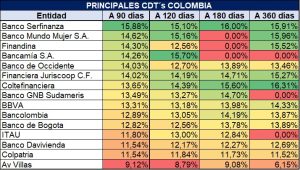 COMPORTAMIENTO DE LAS TASAS CDT’S DE LAS ENTIDADES MÁS IMPORTANTES DEL PAÍS