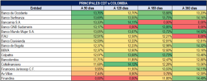 COMPORTAMIENTO DE LAS TASAS CDT’S DE LAS ENTIDADES MÁS IMPORTANTES DEL PAÍS